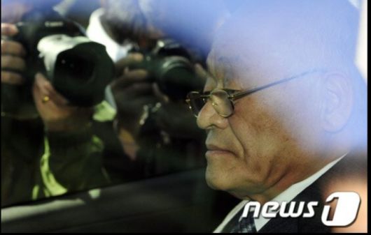 수백억의 벌금 미납 후 일당 5억원의 '황제노역'으로 논란이 된 허재호 전 대주그룹 회장이 4일 오후 광주지검앞에서 대국민 사과문을 발표한 후 대주 관련 피해자들이 차를 막아서며 항의하자 굳은 표정을 짓고 있다.2014.4.4/사진=뉴스1 |