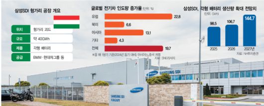 헝가리 공장은 삼성SDI가 2조 원 이상을 투입해 건설한 유럽 내 핵심 거점이다. 2017년 회사 측은 약 9600억 원을 투자해 브라운관 등을 생산하던 공장을 전기차 배터리 공장으로 전환했다. 이후 1조 원 이상을 추가 지원해 2022년 말 제2공장을 준공했으며 약 40GWh(기가와트시), 준중형차 60만 대에 탑재할 배터리를 생산할 능력을 갖췄다.