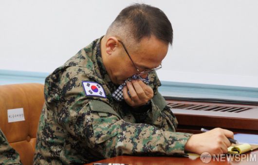 이상현 제1공수특전여단장이 26일 윤석열 전 대통령의 내란우두머리 혐의 5차 공판에 증인으로 출석했다. 사진은 이 여단장이 지난해 12월 10일 오전 서울 여의도 국회 국방위원회에서 열린 12.3 비상계엄 관련 긴급 현안질의에서 눈물을 훔치는 모습. [사진=뉴스핌DB] |