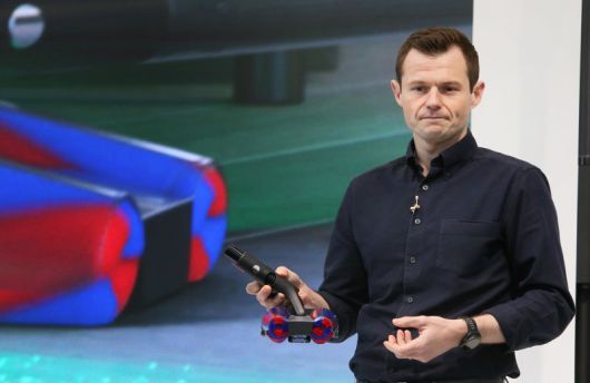 톰 무디 다이슨 홈부문 글로벌 총괄이 26일 서울 성수동에서 열린 기자간담회에서 펜슬백 청소기를 소개하고 있다. 다이슨 제공 |