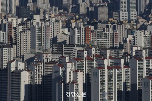 서울 중구 남산에서 바라본 서울 도심의 아파트 단지 모습. 성동훈 기자 |