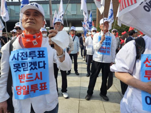 특히 용인 유세에는 '해군사관학교 구국동지회' 깃발을 든 70·80대 지지자들이 '선거 당일 투표하여 공명선거 이룩하자', '사전투표 못믿겠다 반드시 당일투표', '부정선거 척결하자 사전투표NO 당일투표YES' 피켓을 상반신에 붙인 채 나타나기도 했다. 극우 원외 정당인 우리공화당 당원들도 참석해 김 후보 유세를 지원했다.