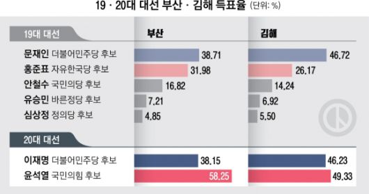 19·20대 대선 부산·김해 득표율 |