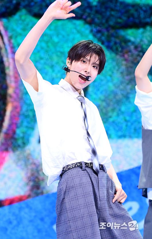 그룹 킥플립 주왕이 26일 오후 서울 광진구 광장동 예스24라이브홀에서 진행된 킥플립(KickFlip) 미니 2집 'Kick Out, Flip Now!(킥 아웃, 플립 나우!)' 발매 기념 쇼케이스에 참석하고 있다. [사진=정소희 기자] |
