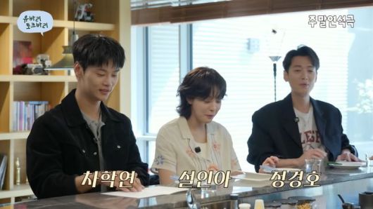 정경호는 설인아에 대해 “설인아는 조정석 같은 스타일이다. 가진 게 많다. 달란트가 많아서 쉽게 되게 많이 안다. 조정석이 수많은 대사를 외워오지 않지 않냐”라고 말했다. 유연석은 “맞다. 우리는 발악 발악 하는데”라며 “(조정석이) 스케줄을 잘못 보고 온 적이 있다. 안 외우고 와서 10분만 시간 달라고 하더니 패드를 보고 바로 하더라. 정경호는 3일 필사를 했는데”라고 폭로해 웃음을 자아냈다. 정경호는 “(설인아가) 그런 스타일이다. 감각적이고 살아있는 걸 좋아한다”고 말했다.