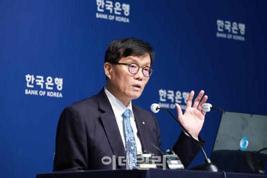 이창용 한국은행 총재가 17일 서울 중구 한국은행 본관에서 금융통화위원회 본회의를 마친 후 통화정책방향 기자 간담회를 열고 취재진의 질문에 답하고 있다. (사진=한국은행) |