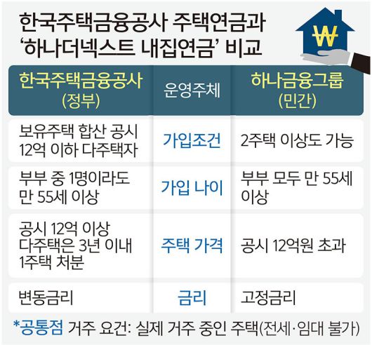 하나금융그룹은 내 집에 평생 살면서 매월 연금을 받는 ‘하나더넥스트 내집연금(역모기지론·이하 내집연금)’을 26일부터 전국 하나은행 영업점에서 판매한다고 밝혔다.