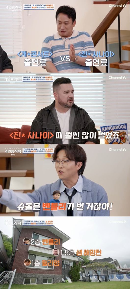 서경석은 "그럼 '개그콘서트'와 '진짜 사나이' 출연료 중에 어디가 더 높냐"고 웃으며 물었고, 샘 해밍턴은 "'진짜 사나이' 때 훨씬 많이 벌긴 했다. 그런데 그렇게 따지면, '슈퍼맨이 돌아왔다' 들어갔을 때 출연료 액수가 더 늘어났다"고 설명했다.