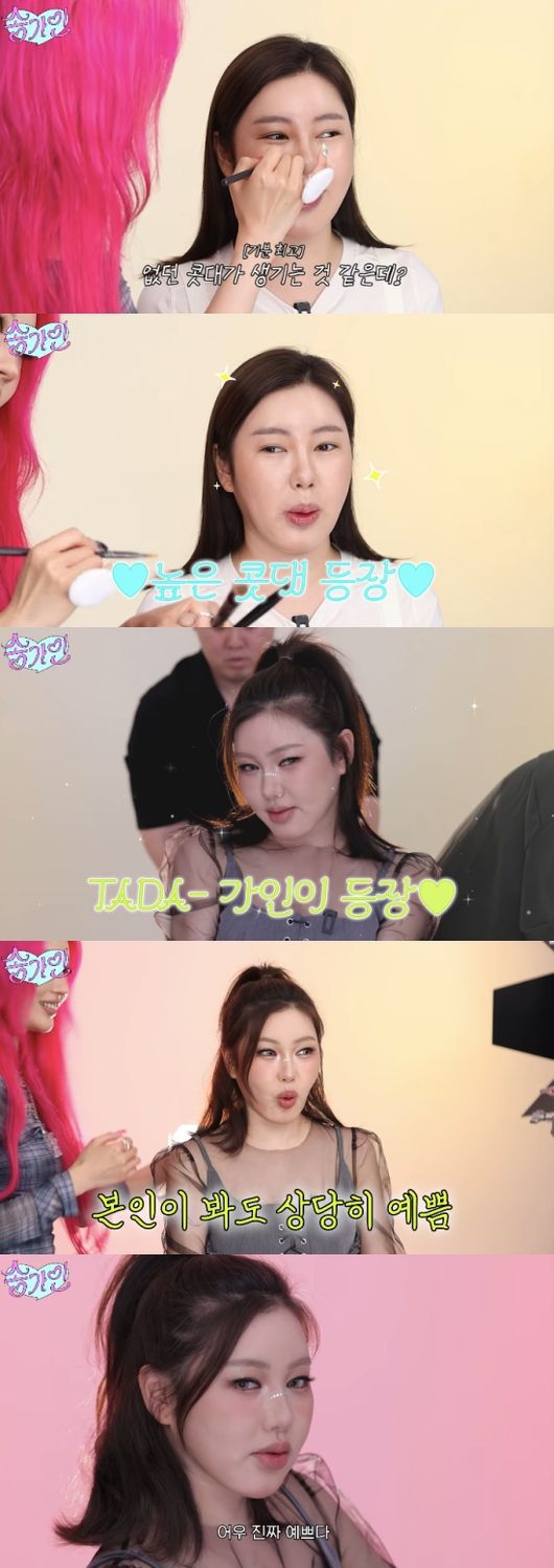 이사배는 코 쉐딩을 했고 송가인은 “없던 콧대가 생기는 것 같다”라고 말하며 심취하는 모습을 보였다. 또 “코 수술했냐고 물어보겠네 이거”라며 만족해했다.