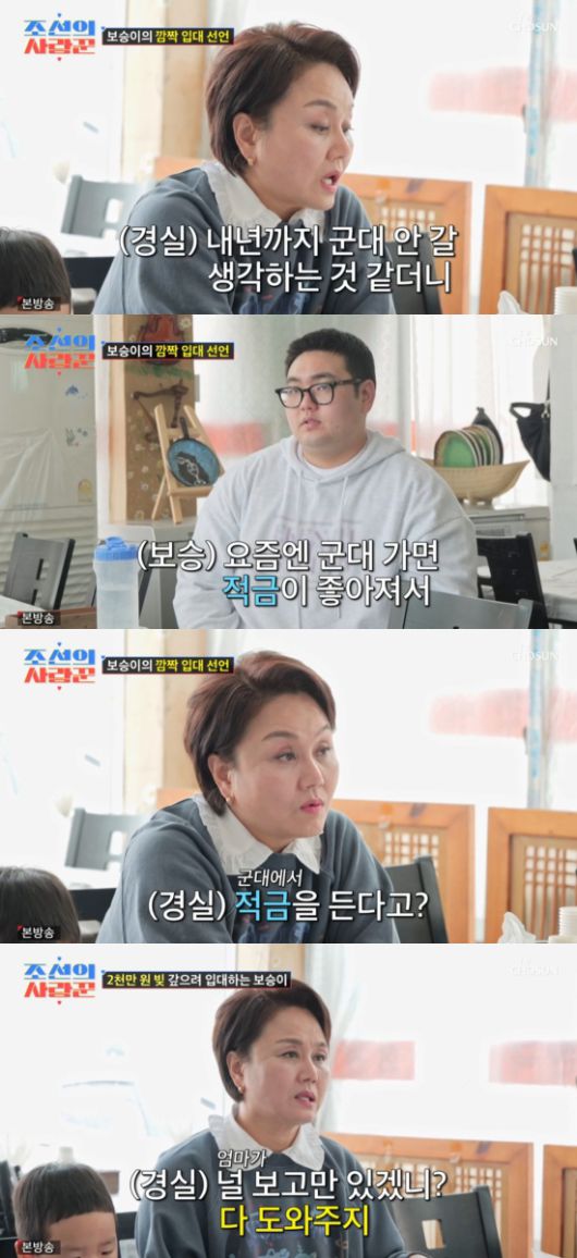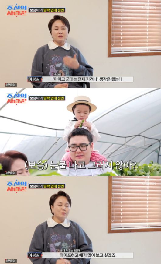 26일 방송된 TV조선 '조선의 사랑꾼'에서는 손보승이 이경실에게 군 입대 소식을 알린 장면이 전파를 탔다.