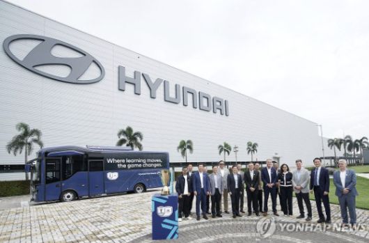 현대차는 이날 조인식에서 동남아축구연맹 후원을 기념해 전기버스 카운티를 개조한 '찾아가는 도서관'도 선보였다.