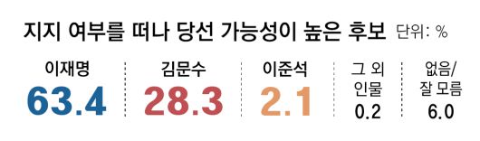 ● 당선 가능성 높은 후보선 이재명 63.4%, 김문수 28.3%
