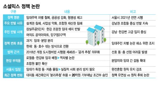정책의 원칙과 현실 사이에서 서울시는 흔들리고 있다. 서울시는 임대주택이 특정 동, 저층, 북향 등으로 몰리며 실질적인 사회적 분리가 발생한다는 점에서 완전 혼합 배치가 필요하다고 주장해왔다. 그러나 이번에는 원칙보다 유연한 행정처리를 택하며 오히려 "소셜믹스는 더 이상 강제 사항이 아니다"는 신호를 시장에 보낸 셈이 됐다.