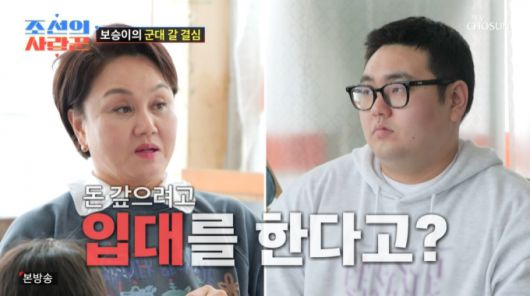이경실은 "내년까지는 군대 안 갈 생각하는 거 같더니 왜 갑자기 군대 간다고 마음먹었냐"고 물었고, 손보승은 "어쨌든 언제든 가야 하는 거고, 이미 늦었다"고 답했다.