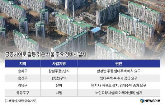 [서울=뉴스핌] 정영희 기자 = 서울 재건축 사업장 곳곳에서 공공기여를 두고 서울시와 조합 사이 갈등이 이어지면서 사업 속도에 악영향을 주고 있다. 정비사업 활성화를 통한 주택 공급량 확대가 절실한 만큼 기부채납 등을 원인으로 하는 문제를 미연에 방지하기 위한 대책 마련이 시급하다는 주장이 제기된다.
