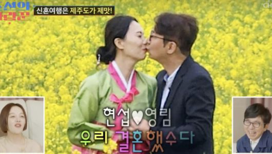 하이라이트는 유채꽃밭 데이트. 두 사람은 영화 ‘폭싹 속았수다’ 속 한 장면처럼 유채꽃밭을 배경으로 한복 차림의 사진을 찍으며 영화 주인공 못지않은 분위기를 자아냈다. 출연진들은 “아이유랑 박보검 같다”며 박수를 보냈고, 심현섭은 “어릴 적 어른들 유채꽃 사진 보며 우리도 저러고 싶었는데 꿈을 이뤄 좋다”며 벅찬 소감을 전했다.