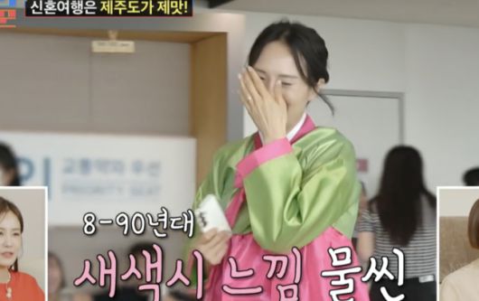 심현섭 부부는 신혼여행지로 제주도를 선택했다. 특히 과거 부모 세대처럼 전통 한복을 입고 떠나기로 약속한 두 사람은 실제로 정장과 한복 차림으로 등장해 모두를 놀라게 했다. 정영림의 새색시 한복 패션에 출연진들은 “80~90년대에서 온 것 같다”, “완전 타임머신이다”라며 웃음을 터뜨렸다.
