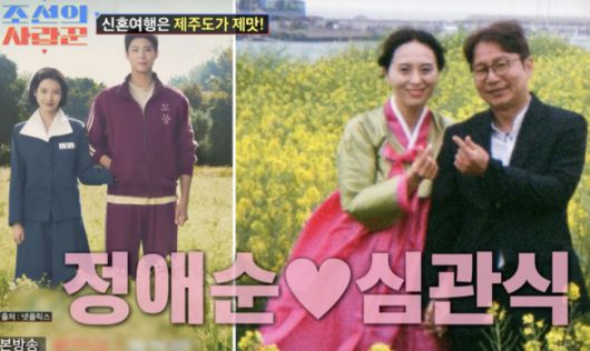 26일 방송된 TV조선 예능 ‘조선의 사랑꾼’에서는 개그맨 심현섭이 아내 정영림과 함께 제주도로 떠나는 신혼여행 모습이 전파를 탔다. 1,400여 명 하객들의 축복 속에 결혼식을 올린 심현섭은 이날 신혼여행에서도 ‘뉴트로’ 감성으로 눈길을 끌었다.