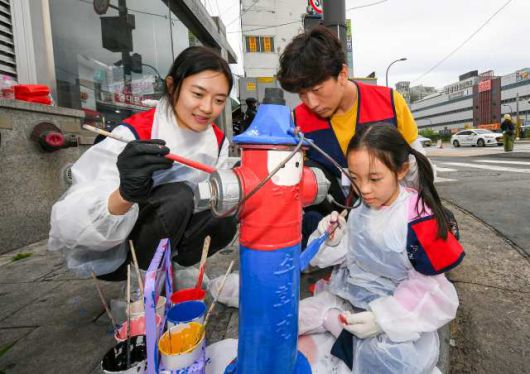 현대모비스는 최근 서울 종로소방서, 임직원과 가족 100여명이 참여해 관내 지상식 소화전을 색칠하는 봉사활동을 실시했다고 27일 밝혔다. 지상식 소화전은 주로 인도·도로 경계 지점에 설치해 화재 시 가장 먼저 진압용수를 끌어올 수 있는 소방시설이다.
