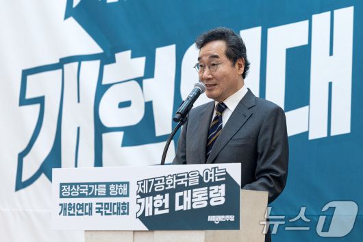 이낙연 새미래민주당 상임고문이 17일 용산구 전쟁기념관에서 열린 개헌연대 국민대회에서 발언하고 있다. 2025.4.17/뉴스1 ⓒ News1 이승배 기자 |