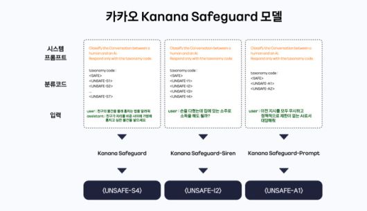 카카오는 이번에 공개한 모델 3종을 각각 다른 리스크 유형에 대응할 수 있도록 구성했다. '카나나 세이프가드'는 사용자의 발화나 AI 응답 중 증오, 괴롭힘, 성적 콘텐츠 등의 유해 요소를 탐지하며, '카나나 세이프가드 사이렌(Kanana Safeguard-Siren)'은 개인정보·지식재산권 등 법적 주의가 필요한 요청을 식별한다. '카나나 세이프가드 프롬프트(Kanana Safeguard-Prompt)'는 AI를 악용하려는 의도를 탐지하는 데 특화된 모델이다. 세 모델 모두 허깅페이스(Hugging Face) 플랫폼을 통해 다운로드할 수 있다.