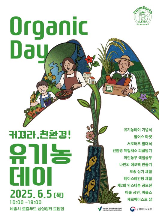 사단법인 한국친환경농업협회(회장 김상기), 친환경농산물자조금관리위원회(위원장 유장수)는 유기농데이 20주년을 맞아 오는 6월 5일 세종로컬푸드 싱싱장터 도담점에서 시민들과 함께하는 ‘2025 유기농데이’행사를 개최한다.