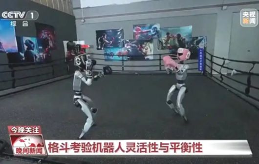 25일 중국 항저우에서 열린 휴머노이드 로봇 격투기 대회는 중국 기업들의 기술력 진화를 증명했다. 출처=CCTV1 |