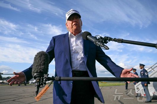 도널드 트럼프 미국 대통령이 25일(현지시간) 뉴저지에서 주말을 보낸 뒤 모리스타운 공항서 워싱턴 행 전용기를 타기 전에 취재진을 만나 “EU에 대해 내달 1일부터 부과하겠다고 경고한 50% 관세를 7월9일까지 유예할 것이다”고 말하고 있다. 2025.05.26 ⓒ AFP=뉴스1 ⓒ News1 우동명 기자 |