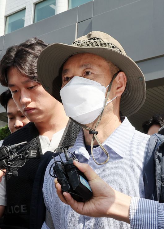 2명이 숨지고 2명이 다친 시흥 살인사건의 피의자 차철남이 지난 21일 오전 구속 전 피의자 심문(영장실질심사) 출석을 위해 경기 시흥경찰서 유치장을 나서고 있다.(사진=연합뉴스) |