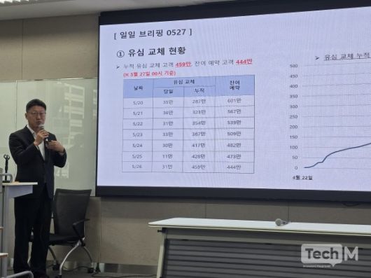 이날 0시 기준 유심 교체자는 459만명이다. 재설정은 22만9000명이 선택했다. 대기자는 444만명이다. SK텔레콤은 지난 19일부터 지난 25일을 제외하고는 하루 30만명 정도 유심 교체를 시행하고 있다. 유심 물량 안정화와 업무 처리 숙련도 향상 덕이다.