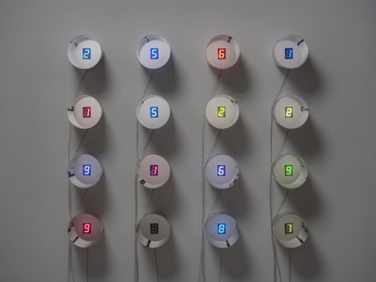 전시장 안에 들어서니 여기저기 거울 표면에 색색으로 깜빡이는 디지털 LED(발광 다이오드) 숫자만 보인다. LED 빛으로 나타난 숫자는 시시각각 다른 색, 다른 숫자로 바뀌고, 어느 순간 원래 아무것도 없었다는 듯이 잠시 꺼지기도 한다. 그렇게 빛을 발하는 색색의 숫자가 나타났다가 사라지고, 다시 깜빡이기를 반복한다.
