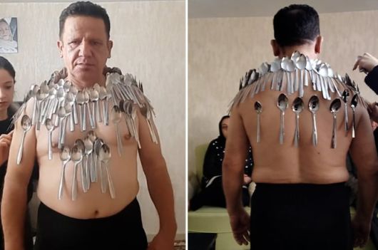어떤 물건이든 몸에 붙일 수 있다고 주장하는 이란의 한 남성이 자신의 몸에 숟가락 96개를 동시에 올려놓는 데 성공해 기네스 세계 기록을 경신했다. 이는 그가 2023년에 세운 88개 기록을 뛰어넘는 새로운 기록으로, 그는 이 분야에서만 세 번째 기록을 세웠다.