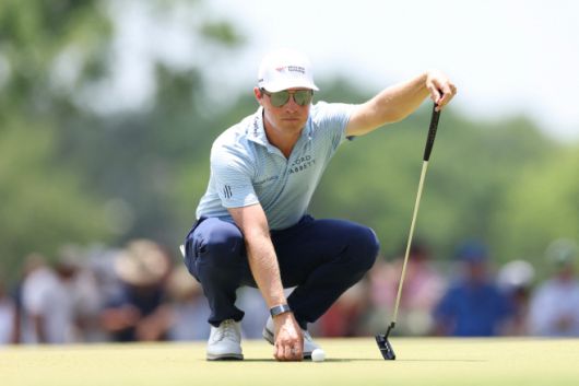 벤 그리핀이 퍼터를 손에 쥐고 앉아 그린을 읽고 있다. /AFP 연합뉴스 |