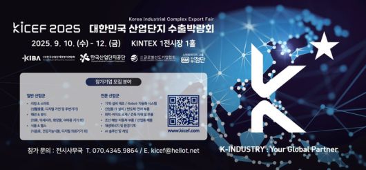 KICEF 2025(Korea Industrial Complex Export Fair)는 국내 산업단지 입주기업 세계 시장 진출과 수출 경쟁력 강화를 위해 마련된 산업단지 특화 박람회다. 한국산업단지공단, 한국산업단지경영자연합회, 글로벌선도기업협회이 공동 기획했고, 후원으로는 대한무역투자진흥공사, 신용보증기금, 한국무역협회, 한국중견기업연합회, KB국민은행이 참여한다.