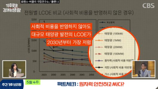 원전에 들어간 '히든 코스트(숨겨진 비용)'는 단가에 반영이 안 되고, 태양광은 해외에서는 보이지 않는 비용들이 국내 단가에 포함이 되니까 차이가 나는 거고요. 그래서 늘 제가 말씀드리지만, 이런 문제는 글로벌 흐름과 시장 흐름이 어떤지를 꼭 봐야 합니다.
