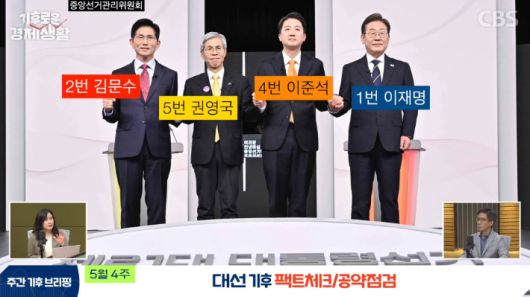 ◇ 최서윤> 네. 공직선거법상 법정 토론회에 초청 자격이 있는 4명의 후보를 집중적으로 살펴보려고 해요. 기후 대응과 경제 간의 조화, 특히 에너지 정책이 주를 이뤘는데요. 관련해서 공약을 살펴보면, 큰 틀에서 재생에너지 확대와 원전 확대를 놓고 의견이 갈립니다.