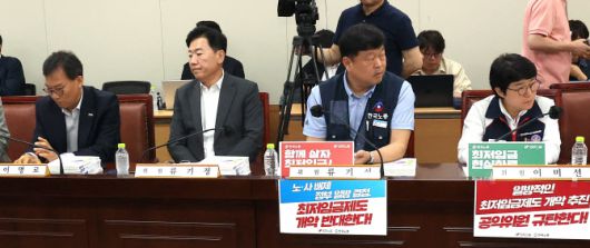 반면 경영계는 소상공인의 어려움이 가중되고 있다며 임금 지불 능력이 떨어지는 업종에 최저임금을 낮게 적용해야 한다고 주장했다. 사용자위원인 이명로 중소기업중앙회 인력정책본부장은 “자영업자들의 전반적인 경영 여건이 어려워질 것으로 예상되는 가운데 음식숙박업 등 일부는 존폐기로에 서 있다”며 “취약 업종에 대해선 최저임금을 달리 적용해 인건비 부담을 줄여야 한다”고 했다. 류기정 한국경영자총협회 전무도 “한계 상황에 처한 영세 중소기업과 소상공인의 어려움을 외면해선 안 된다”고 했다.