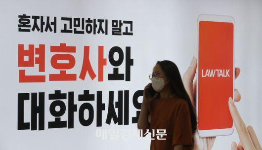 지난 2021년 서울 서초구 교대역에 걸린 로톡 광고판 앞을 시민이 지나가고 있다. <매경DB> |