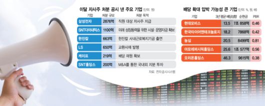 일각에서는 대선 이후 행동주의 펀드를 중심으로 배당 확대, 자사주 소각 요구가 제기될 가능성이 큰 상장사 명단이 거론된다. LS증권은 지난해 배당성향이 최근 3년 평균 대비 낮은 상장사 가운데 순현금 상태면서 주가순자산비율(PBR)이 1배 미만인 곳을 대상으로 배당 확대 요구가 확산될 것으로 봤다. 대표적인 기업으로 현대모비스(PBR 0.46배), 한국타이어앤테크놀로지(0.42배), 농심(0.81배), 아모레퍼시픽홀딩스(0.56배) 등이다. 자사주 비중이 높으면서 PBR이 낮은 삼성물산(0.60배), LG생활건강(0.92배), 대한제강(0.36배) 등에 대한 자사주 소각 요구 목소리도 커질 것으로 전망했다.