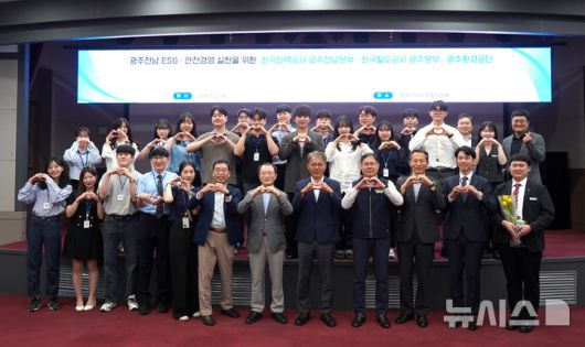 [광주=뉴시스]이창우 기자 = 한전 광주전남본부는 27일 본부 강당에서 코레일 광주본부, 광주환경공단과 함께 융합 ESG(환경·사회·지배구조) 경영·안전 경영 실천과 조직 혁신을 촉진할 '연합 주니어보드 발대식'을 개최했다.