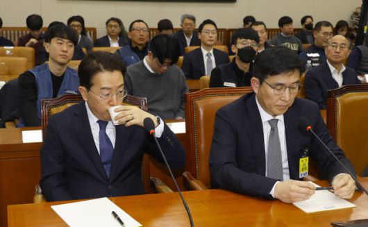 강한승 주식회사 쿠팡 전 대표이사 지난 1월21일 국회 환경노동위원회 청문회에 출석해 의원들의 질문을 들으며 물을 마시고 있다. 윤운식 선임기자 yws@hani.co.kr |