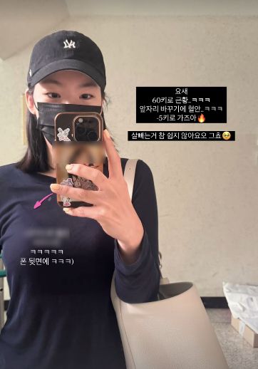 이다은은 27일 개인 채널에 “요새 60킬로 근황.. 앞자리 바꾸기에 혈안.. -5킬로 가즈아”, “살 빼는 거 참 쉽지 않아요. 그렇죠”라는 글과 함께 사진을 게재했다.
