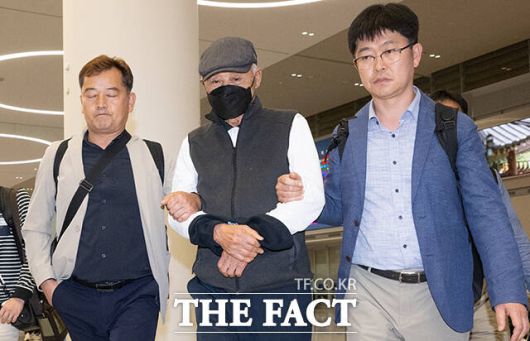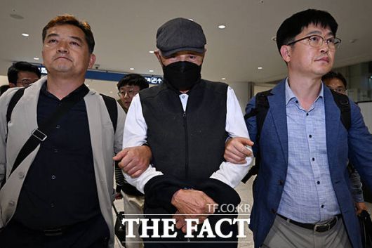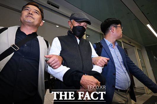 [더팩트ㅣ인천국제공항=박헌우·서예원 기자] 탈세 혐의로 재판에 넘겨지고도 해외에 머물며 재판에 불출석한 허재호 대주그룹 전 회장이 27일 오후 인천국제공항을 통해 송환되고 있다.