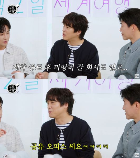 소속사명인 ‘베이스캠프컴퍼니’는 조인성이 직접 지었다고. 장도연이 “소속사에 가면 대표님 방도 있냐”고 묻자 차태현은 “아직 방이 없다. 공유 오피스 쓴다”고 답했다. 이어 “내가 사무실 구하면 다시 한번 연락주겠다”고 해 웃음을 자아냈다.