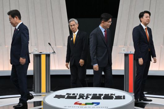 이날까지 세 차례의 토론에서 집중 공격을 받은 이재명 더불어민주당 후보는 이날 이준석 개혁신당 후보의 12·3 비상계엄 사태 당일 행적을 걸고 넘어졌다. 이재명 후보는 이준석 후보에게 “강남에서 술 드시다가 바로 국회로 온 것도 아니고 집에 가서 옷 갈아입고 샤워하고 국회에 와서 안 들어가고 다툼하고 시간 보내지 않았느냐. 납득이 되지 않는다. 해명을 해달라”고 질문했다.