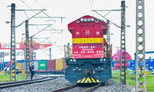 중국과 유라시아 대륙을 오가는 화물열차 '창안호'가 중국 시안역을 출발하고 있다. 일대일로 프로젝트의 일환으로 2013년 운영을 시작한 중국-유럽 화물열차 창안호는 중국 산시성과 유럽을 잇는 주요 운송로로 자리 잡았다. 지난 10년간 창안호의 운행량은 1만6,000회에 달한다. |