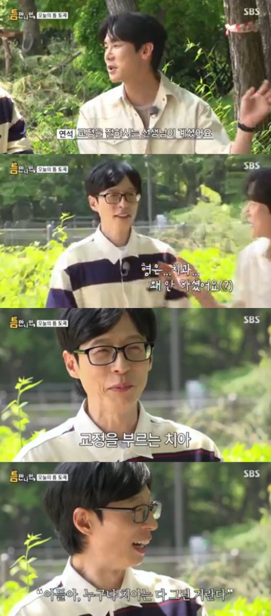유연석은 "교정으로 유명하신 선생님이 계셔서 여기로 왔었다. 지금도 그대로 계시더라"면서 유재석의 치아를 바라보며 "형은 왜 교정을 안 하셨냐"고 물었다.