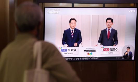 27일 오후 서울역 대합실에서 한 시민이 중앙선거방송토론위원회 주관 제21대 대통령선거 3차 후보자 토론회를 시청하고 있다. (사진=뉴시스) |