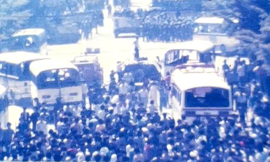 5·18민주화운동기록관은 27일 5·18민주화운동 당시 미공개 영상기록물을 공개했다. 광주 금남로에서 계엄군의 집단 발포 직전인 1980년 5월21일 계엄군과 대치하고 있는 시민 모습이 담겨 있다. 영상물 캡처 ⓒ 세상을 보는 눈, 세계일보
