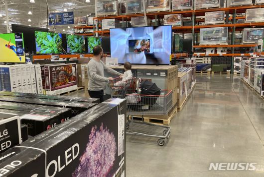 [론트리(콜로라도주)=AP/뉴시스] 27일(현지 시간) ABC뉴스에 따르면 콘퍼런스보드는 5월 소비자신뢰지수가 전월 대비 12.3포인트 상승한 98을 기록했다. 지난달 소비자신뢰지수는 2020년 5월 코로나19 팬데믹 발발 이후 최저치를 기록했는데, 이달 반등한 것이다. 사진은 미국 콜로라도주 론트리의 대형 마트에서 한 고객이 TV를 살펴보고 있는 모습. 2025.05.28. |